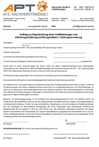 Für die Beauftragung und Erstellung eines Gutachten durch unser KFZ-Sachverständigenbüro muss der Auftraggeber einen Auftrag erteilen. Dieses Formular beinhaltet alle Informationen, die dafür erforderlich sind.